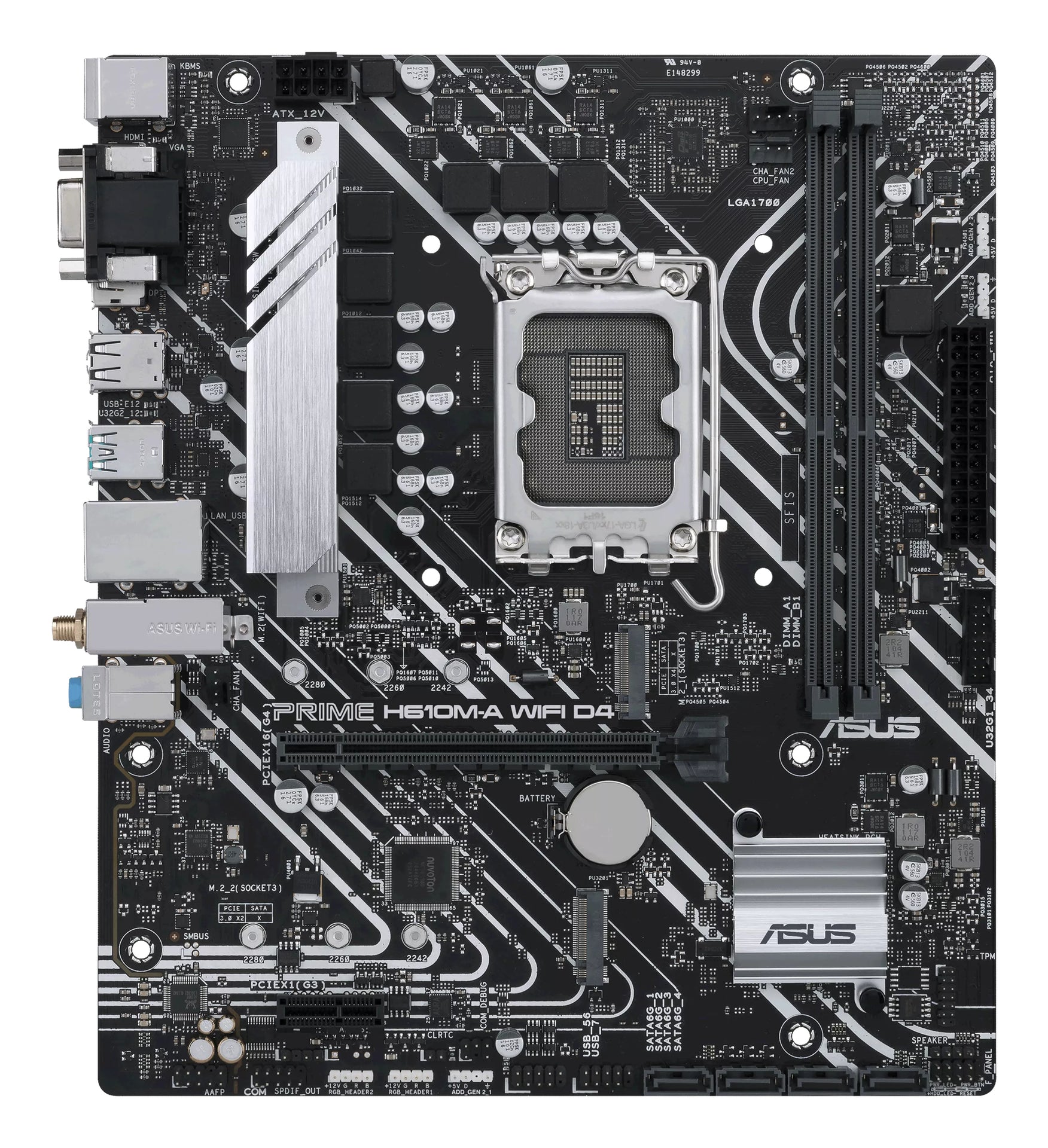 PRIME H610M-A WIFI D4 tiene Wi-Fi 802.11ac con antenas 1x1 de 2,4/5 GHz para velocidades de transferencia de hasta 433,3 Mbps* para garantizar que cada usuario conectado experimente las mejores velocidades inalámbricas y en línea.