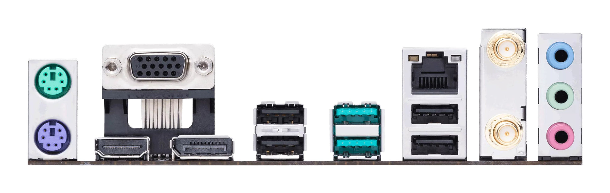 Numerosos puertos USB admiten equipos de alta gama cargados con periféricos, incluidos puertos USB Tipo A en el panel trasero con USB 3.2 Gen 2 rápido para velocidades de transmisión de hasta 10 Gbps.