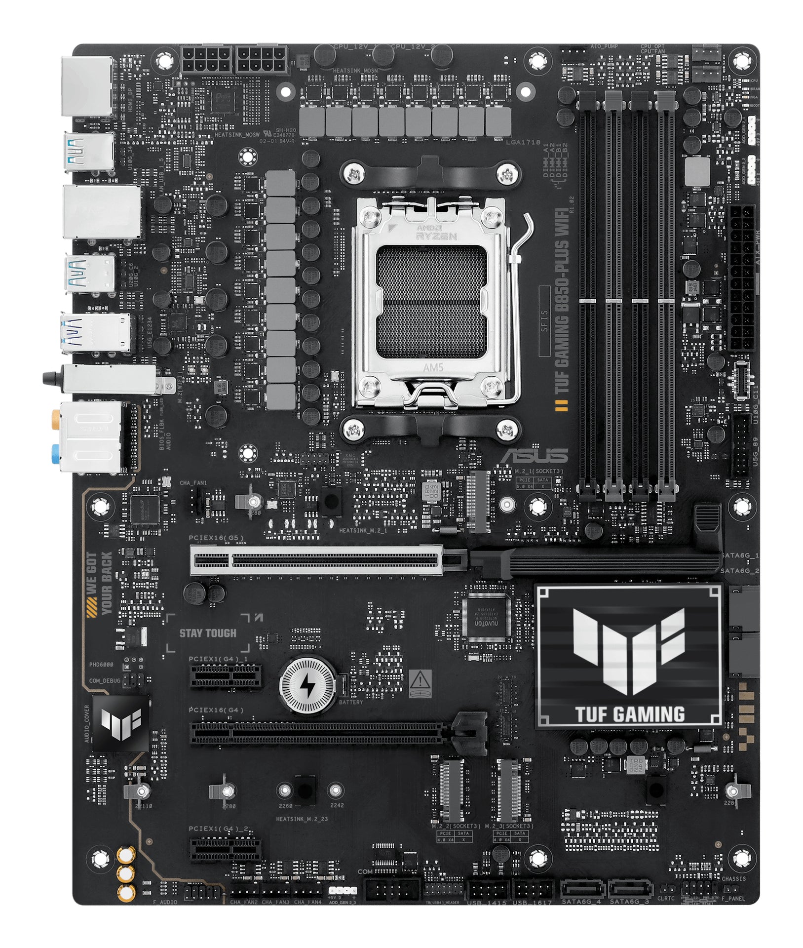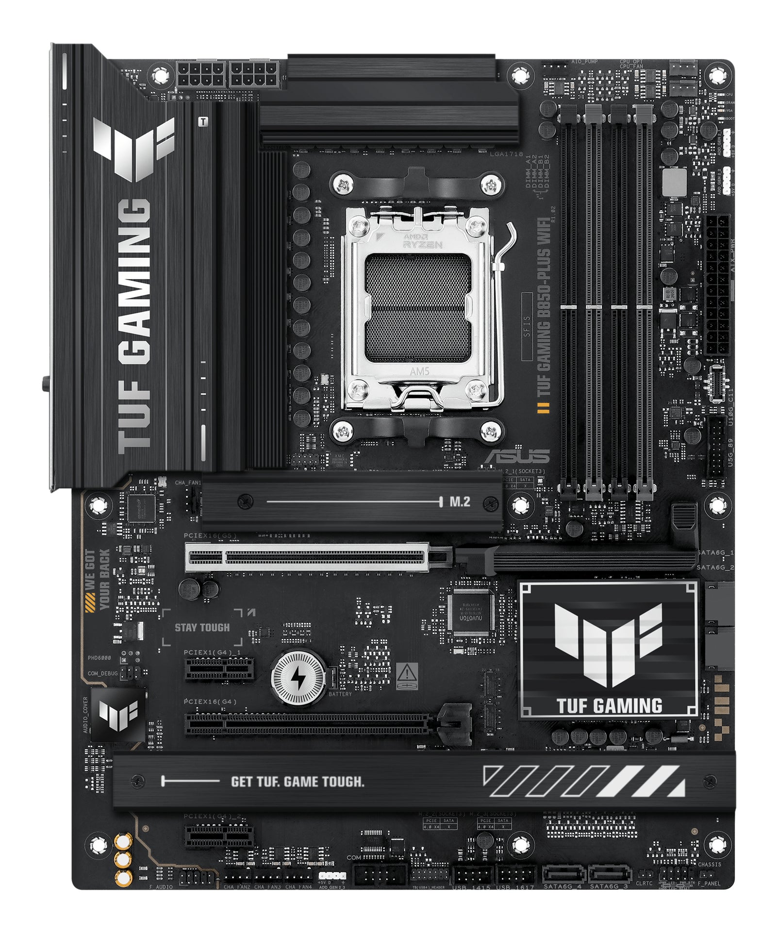 When only the fastest will do, TUF Gaming B850 motherboards deliver. With faster dual-channel DDR5 memory support, AMD EXPO™ technology and PCIe® 5.0 support for both graphics and NVMe, you can play the most demanding games and deliver your biggest projects with the revolutionary performance of an TUF Gaming B850 motherboard and AMD Ryzen™ 9000, 8000, and 7000 Series processors.