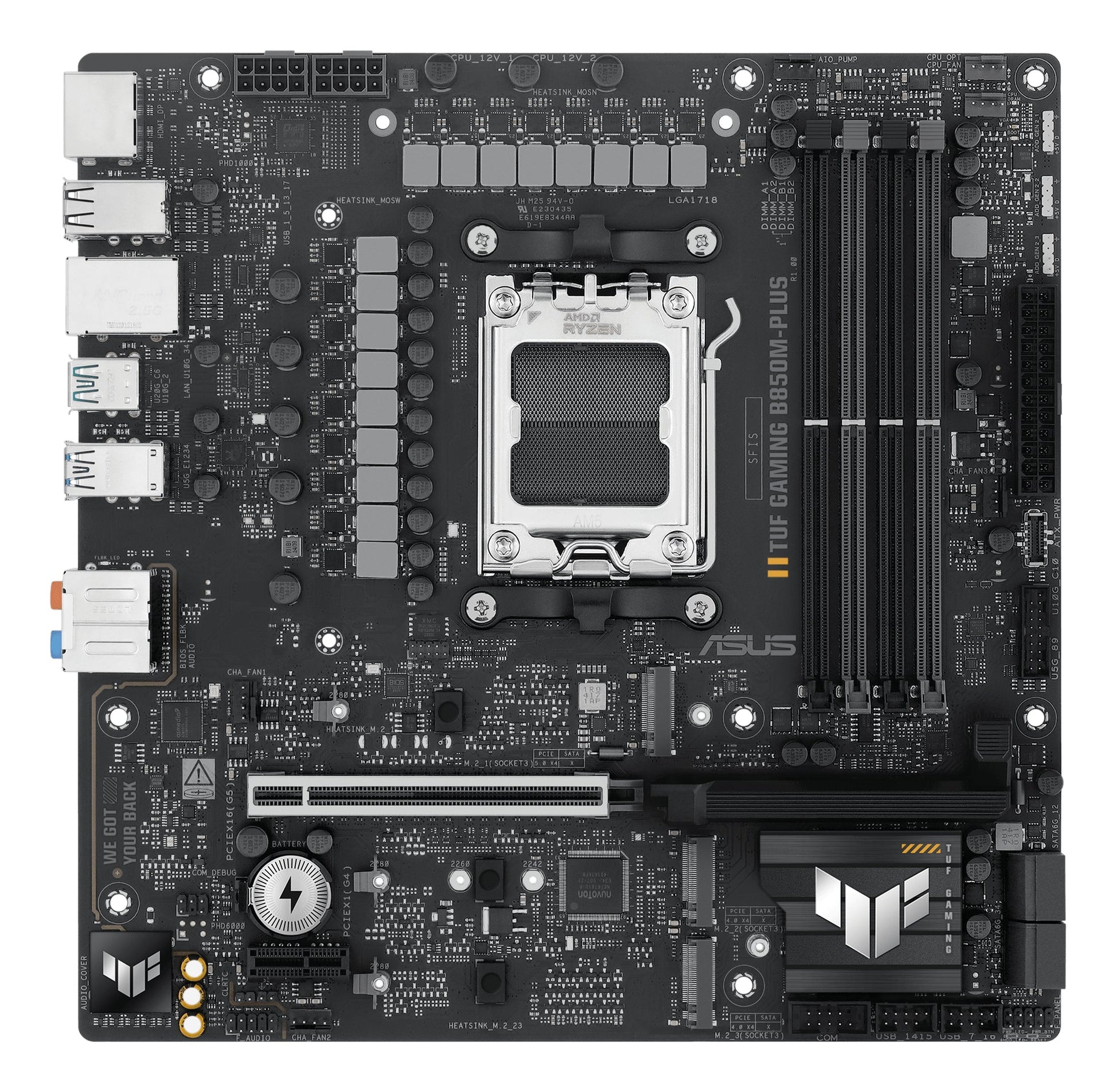 ASUS TUF GAMING B850M-PLUS takes all the essential elements of the latest AMD Ryzen™ processors and combines them with game-ready features and proven durability. Engineered with military-grade components, an upgraded power solution and a comprehensive cooling system, this motherboard goes beyond expectations with rock-solid and stable performance for marathon gaming. TUF GAMING motherboards also undergo rigorous endurance testing to ensure that they can handle conditions where others may fail. This platform delivers the power and connectivity that advanced AI PC applications demand.