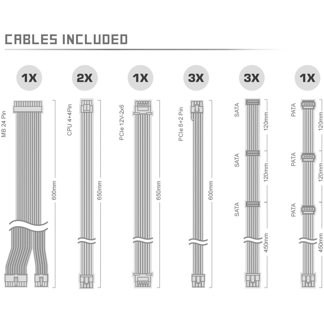 SATA power cable length: 120,450 mm