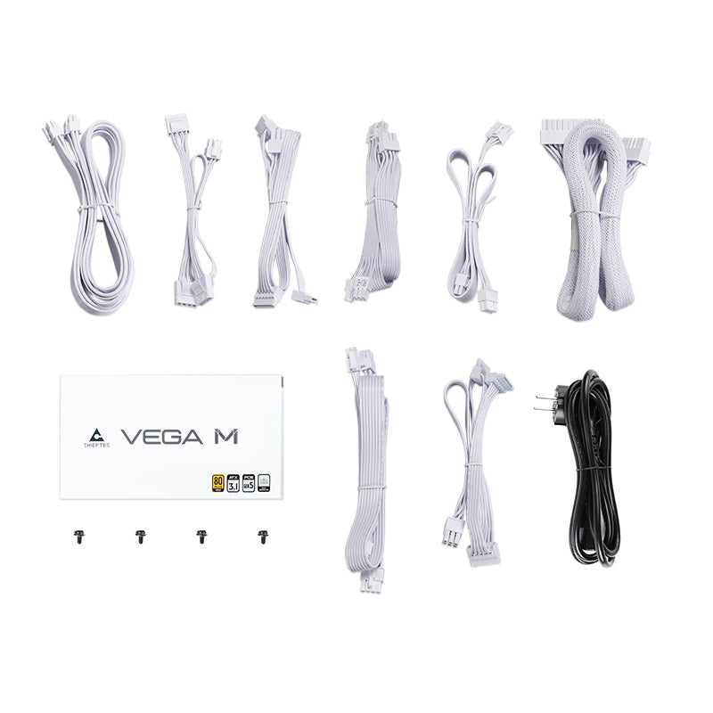 Chieftec Vega PPG-1000-CW. Total power: 1000 W, AC input voltage: 100 - 240 V, AC input frequency: 50/60 Hz. Motherboard power connector: 24-pin ATX, Motherboard power cable length: 60 cm, SATA power cable length: 150,400 mm. Purpose: PC, Power supply unit (PSU) form factor: ATX, 80 PLUS certification: 80 PLUS Gold. Product colour: White, Cooling type: Active, Fan diameter: 13.5 cm. Certification: 80PLUS Gold