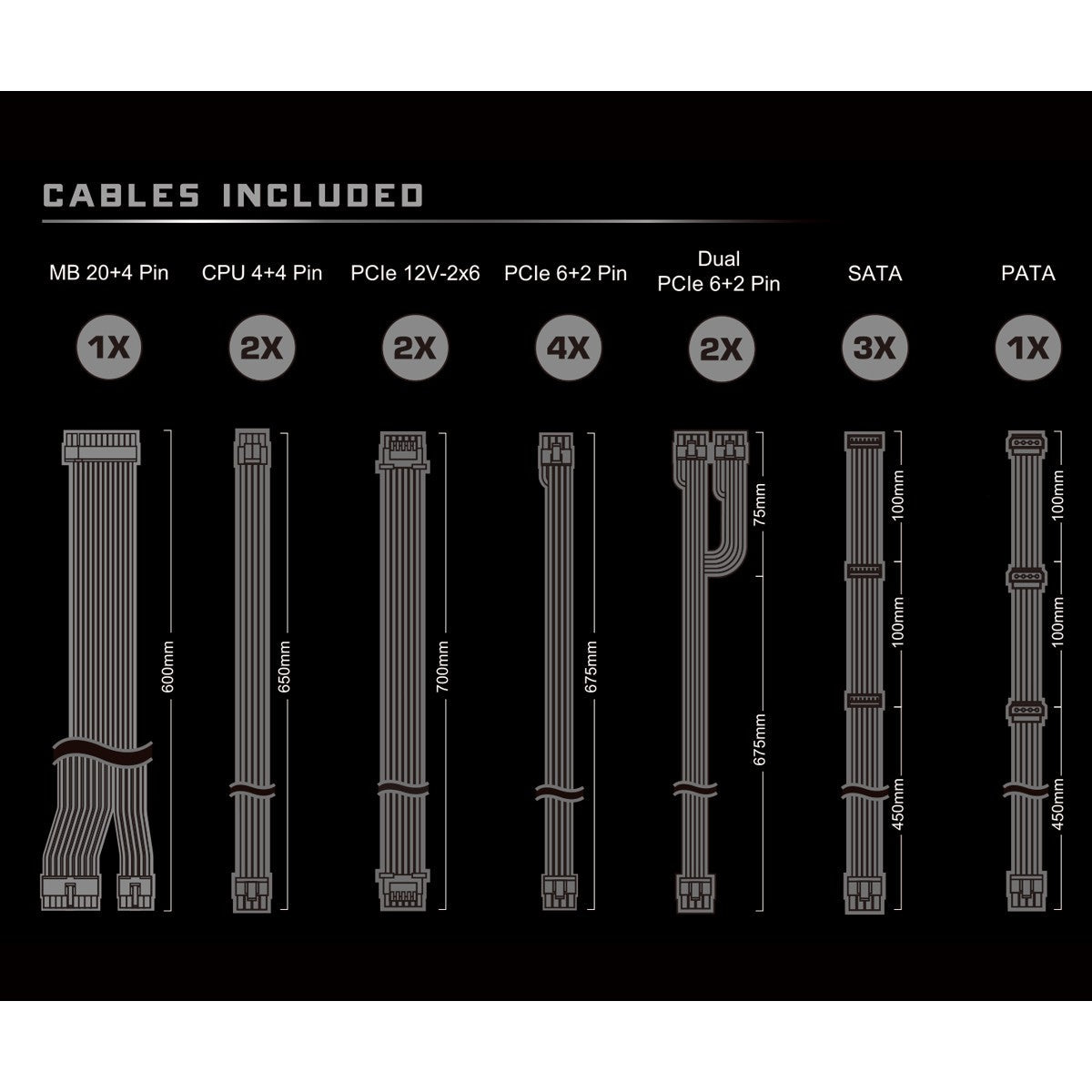 SATA power cable length: 100,450 mm