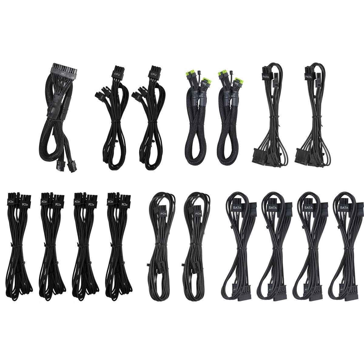 Cables included: CPU, PATA, PCIe, Peripheral (Molex), Peripheral (Molex) to SATA 3.3, SATA