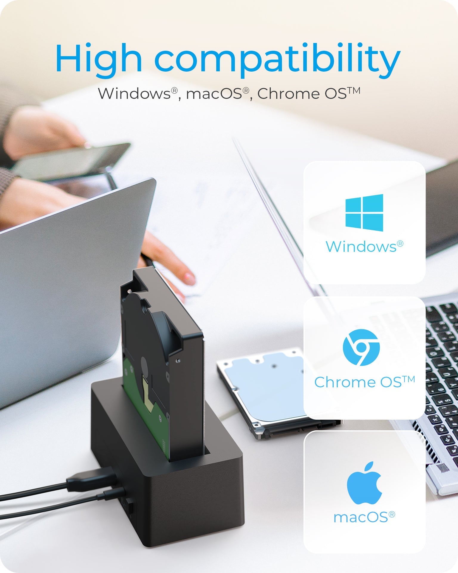 No matter which system you use, the IB-1121-U3 is compatible with Windows®, macOS® and Chrome OS™. Thanks to Plug & Play, none of the operating systems require additional driver installation. With its matte black design, the device also blends perfectly into the work environment.