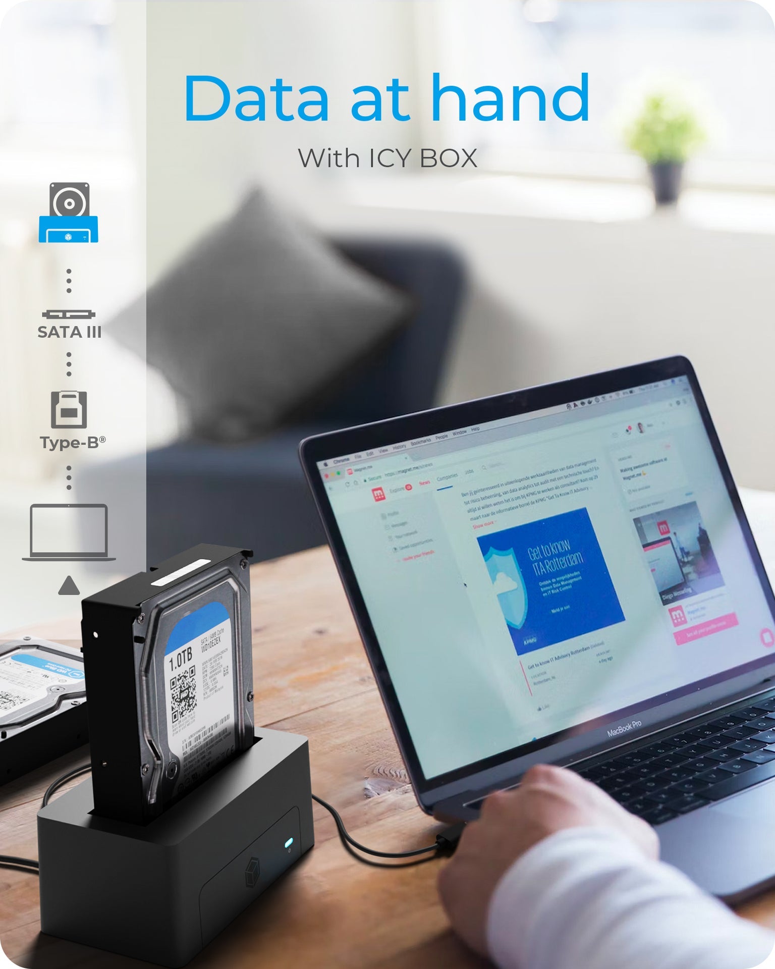 The double bay of the enclosure quickly and easily accepts a 2.5" or 3.5" SATA I/II/III SSD or HDD and can be used immediately as an external storage medium. Due to the simple insertion and re-insertion of the hard disks, the change is child's play and does not require any tools.