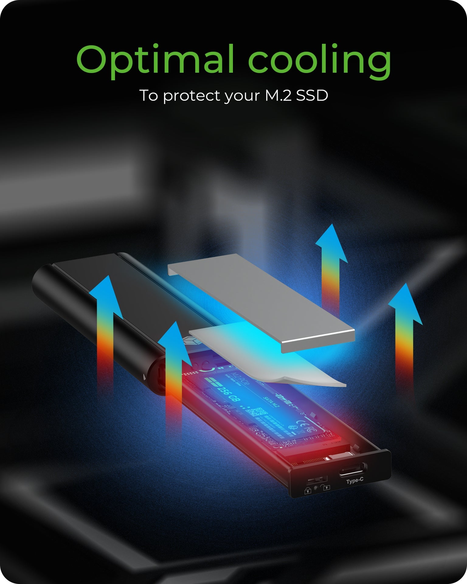 With the IB-1807MT-C31, you wrap your NVMe storage in black aluminium. This is not only chic, but also robust. In addition, the high-quality aluminium cools your storage. M.2 NVMe SSDs in the common sizes from 2230 to 2280.