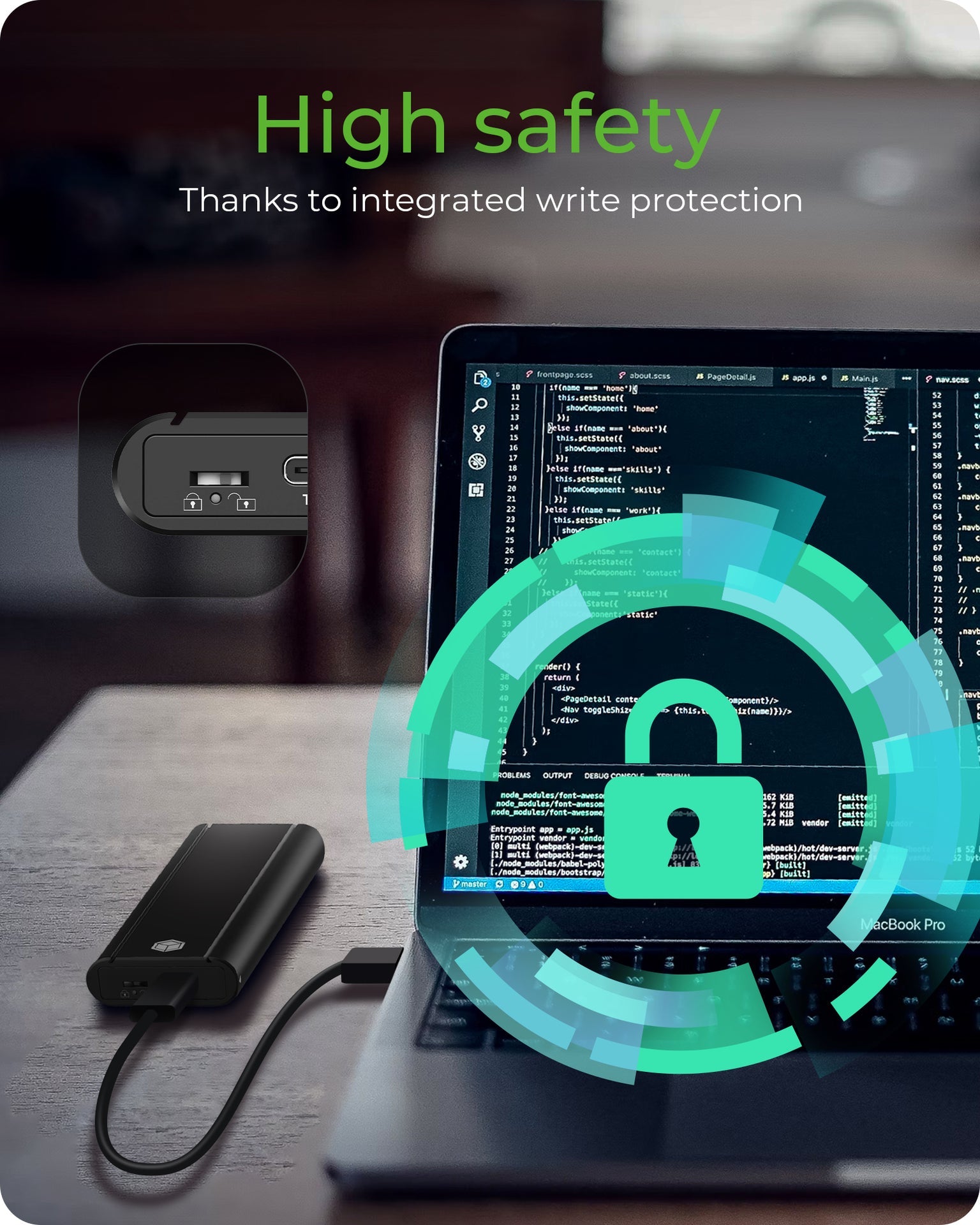 The loss of data is absolutely annoying, but can be avoided with the IB-1807MT-C31 from ICY BOX. Our enclosure for M.2 SSDs has a write protection that can be easily activated and deactivated again by a switch. So your data is always safe.