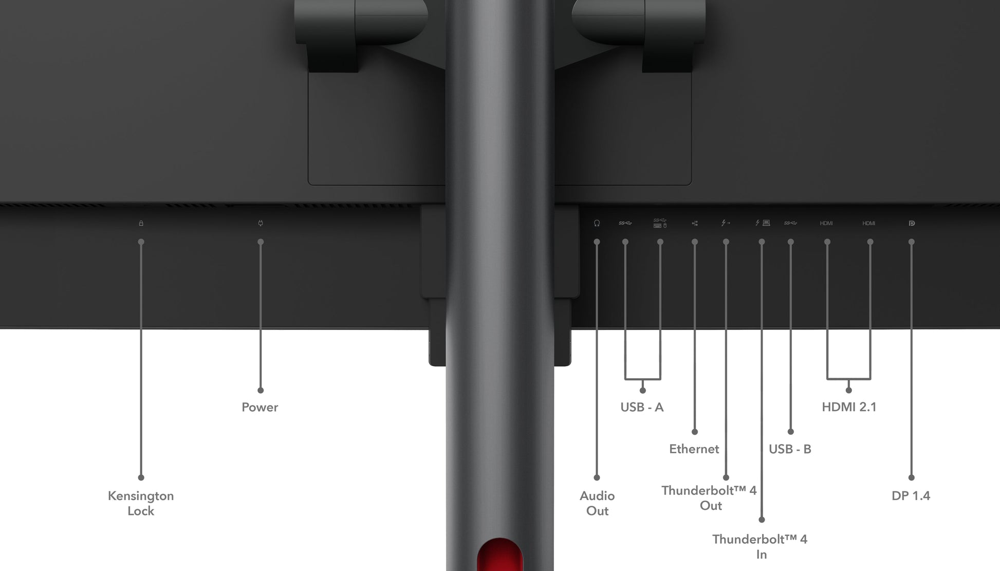 crunching to chasing stock market numbers. Its In-Plane Switching black panel technology delivers deep blacks and vivid, vibrant colors, while the wide viewing angles ensure that the screen is clearly visible from every angle. Enjoy a sharper view of your working world with its Dual QHD (5120 x 1440) resolution and 2000:1 contrast ratio. Get more done on a single screen with the 49-inch screen size and 32:9 screen aspect ratio. See crystal-clear views that appear consistent from every angle with the In-Plane Switching panel. 98% DCI-P3 color space coverage, along with an Avg. Delta E<2 lets you enjoy rich and vivid color representation. The ThinkVison P49w-30 Monitor sports a total of 13 ports, including two Thunderbolt™ 4 ports which facilitate extremely fast data transfer of up to 40 Gbps. Availability of an ethernet port lets you access your machines’ Intel® vPro® capabilities over the internet. Lenovo’s patented True Split allows you to work on content from two PCs on a single screen through the PBP function with just one cable. Switch easily between two connected PCs with Lenovo’s eKVM/KVM switch without the need for additional drivers. Enjoy loud and crystal-clear audio with the two built-in 5W speakers and benefit from the option to have a more convenient remote meeting experience with support for the MC60 Monitor Webcam. Let the ThinkVison P49w-30 Monitor help you create a robust performance-driven ecosystem with ease.
