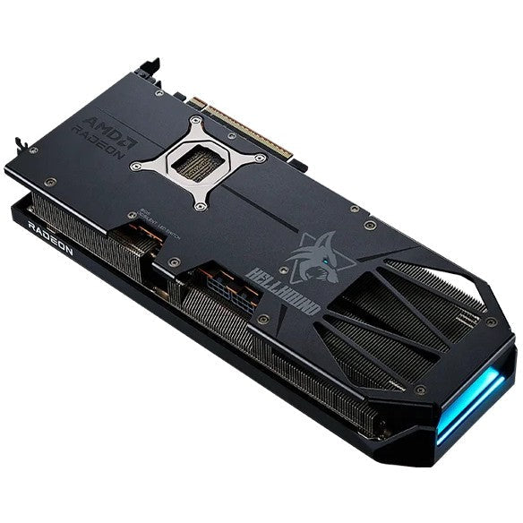 PowerColor Hellhound Radeon RX 9070 XT. Graphics processor family: AMD, Graphics processor: Radeon RX 9070 XT. Discrete graphics card memory: 16 GB, Graphics card memory type: GDDR6, Memory bus: 256 bit. Maximum resolution: 7680 x 4320 pixels. DirectX version: 12.0, OpenGL version: 4.6. Interface type: PCI Express x16 5.0. Cooling type: Active, Number of fans: 3 fan(s), Illumination colour: Blue