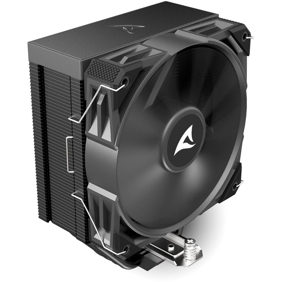 Sharkoon A40. Type: Air cooler, Fan diameter: 12 cm, Rotational speed (min): 500 RPM, Rotational speed (max): 1800 RPM, Airflow: 121.55 m³/h, Maximum air pressure: 2.9 mmH2O, Bearing type: Fluid Dynamic Bearing (FDB). Width: 720 mm, Depth: 120 mm, Height: 159 mm. Product colour: Black
